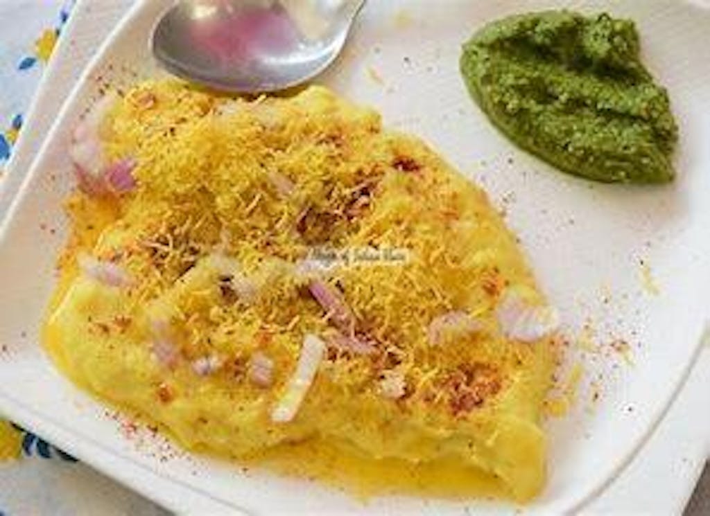 Khamani, on the other hand, is a crushed Surti Khaman mixed with spices, sev, garlic, and garnishing. It’s more like a spicy, tangy version of Khaman served as a snack.